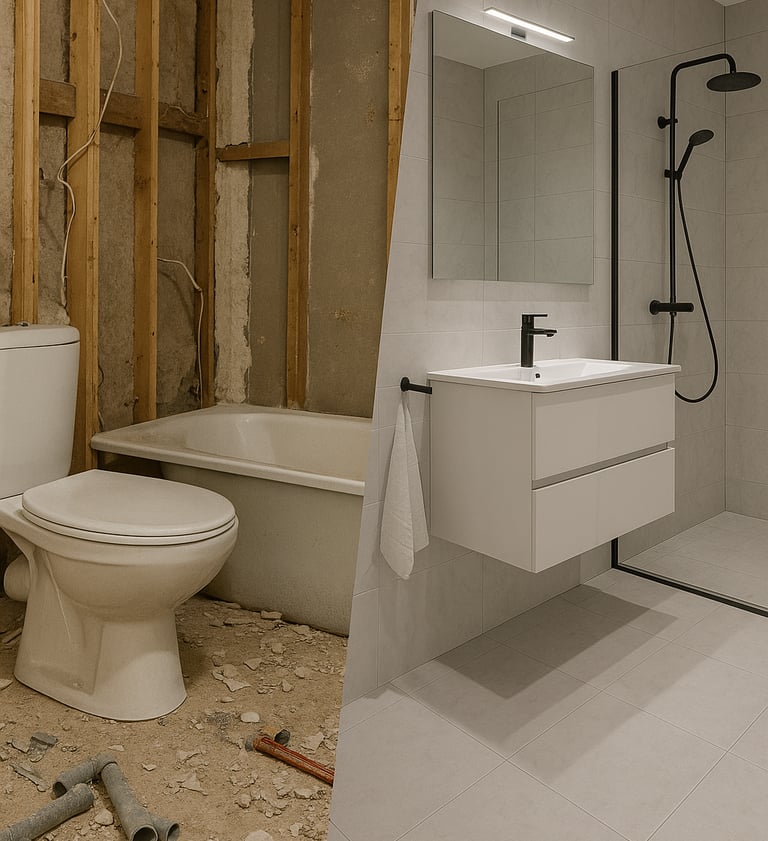 Vi håndterer hele prosjektet for deg - fra planlegging og riving til rørleggerarbeid, elektrikerarbeid, flislegging og den siste finishen. Du slipper å være prosjektleder i din egen hverdag.